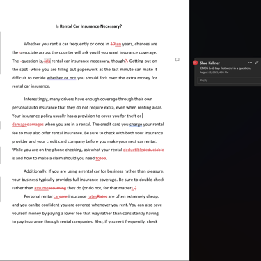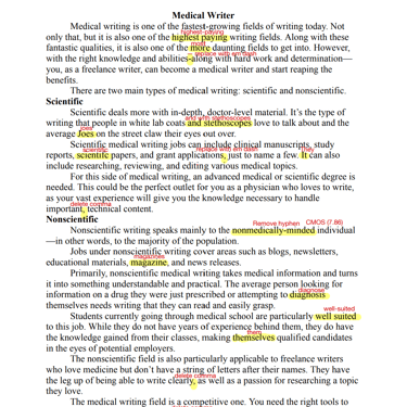 Errors are indicated in yellow while modifications are shown in red text throughout the document. This approach provides swift and clear visibility of correction sites, allowing you to better recognize the specifics and enhancements made in each document. The client manually updates the original document to reflect accepted corrections.